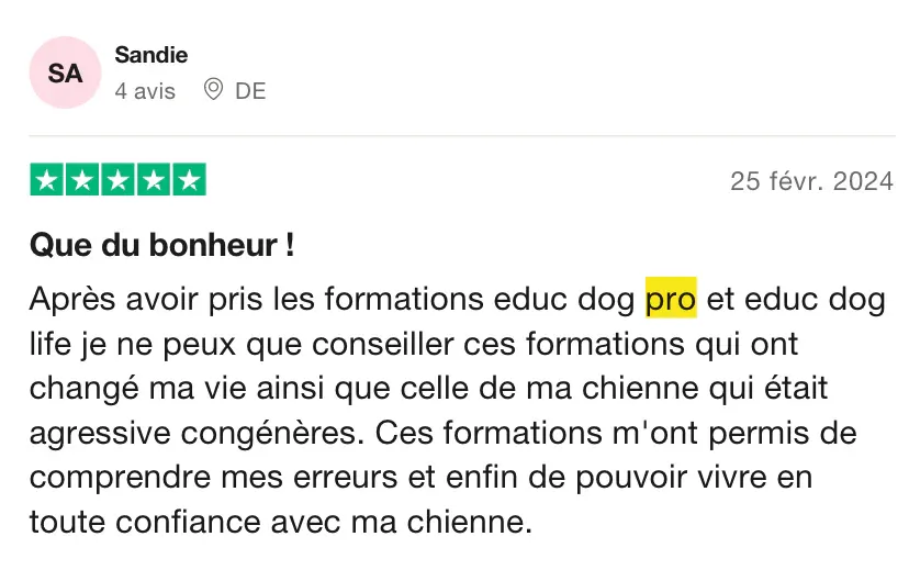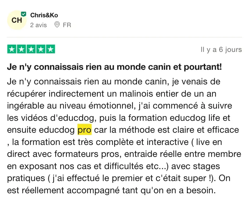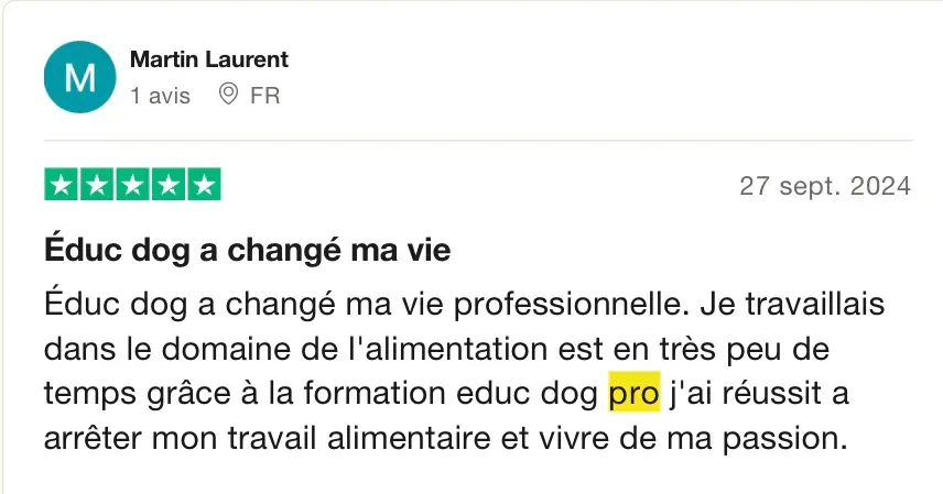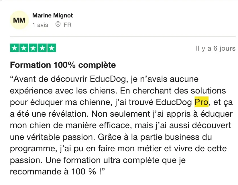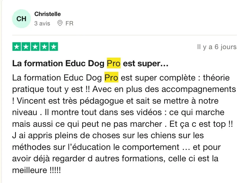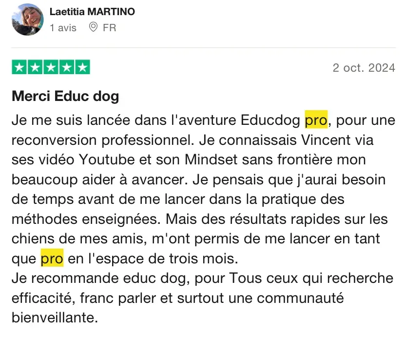 "Plus j'en apprenais, plus je voulais en apprendre. Educ Dog Pro c'est top de le faire"