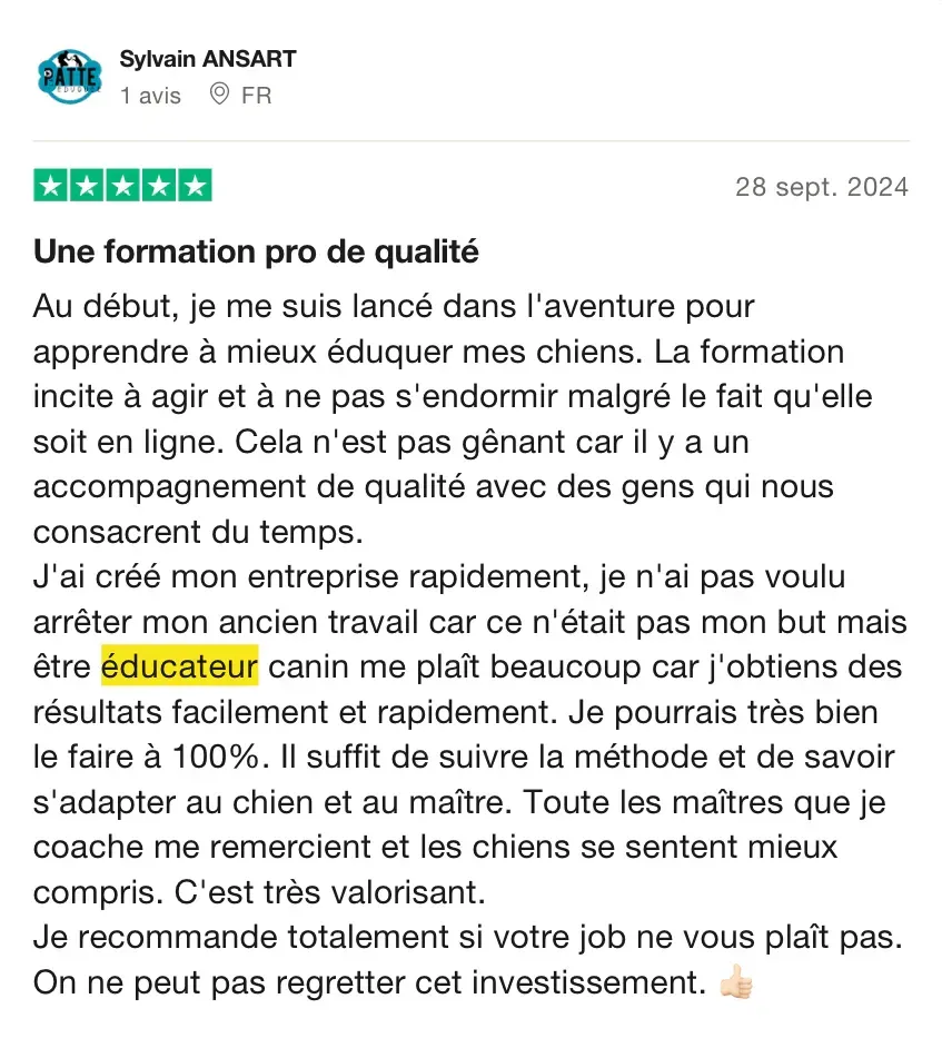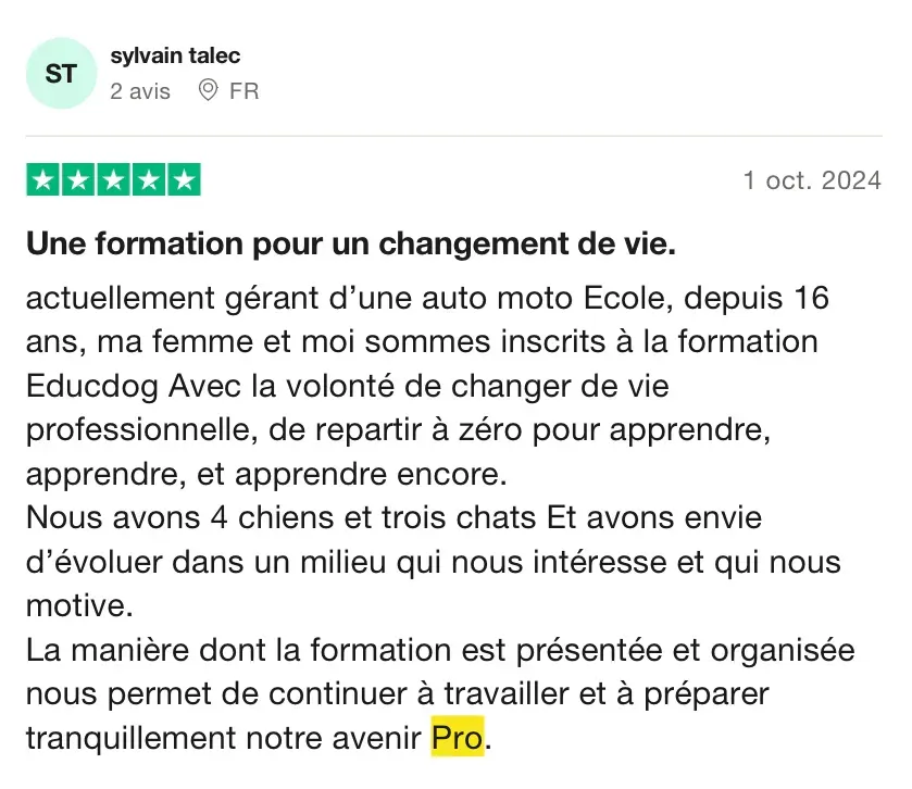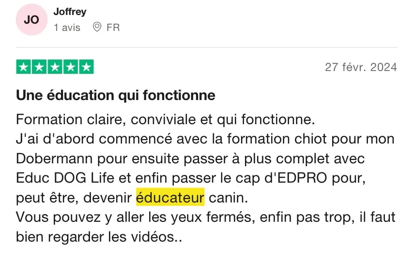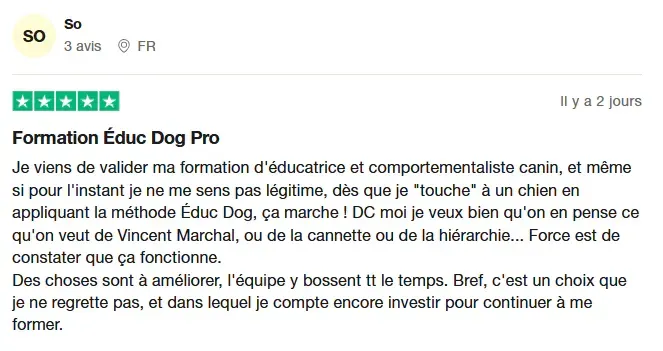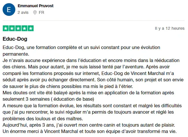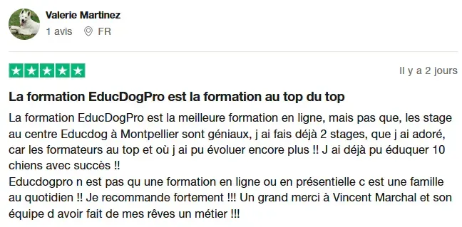 "J'ai cherché pendant des mois la perle rare et c'est fait, la formation éducateur canin Educ Dog !"