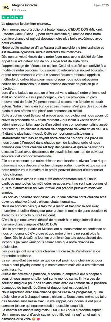 Julie - spécialiste des chiens compliqués au centre canin Educ Dog