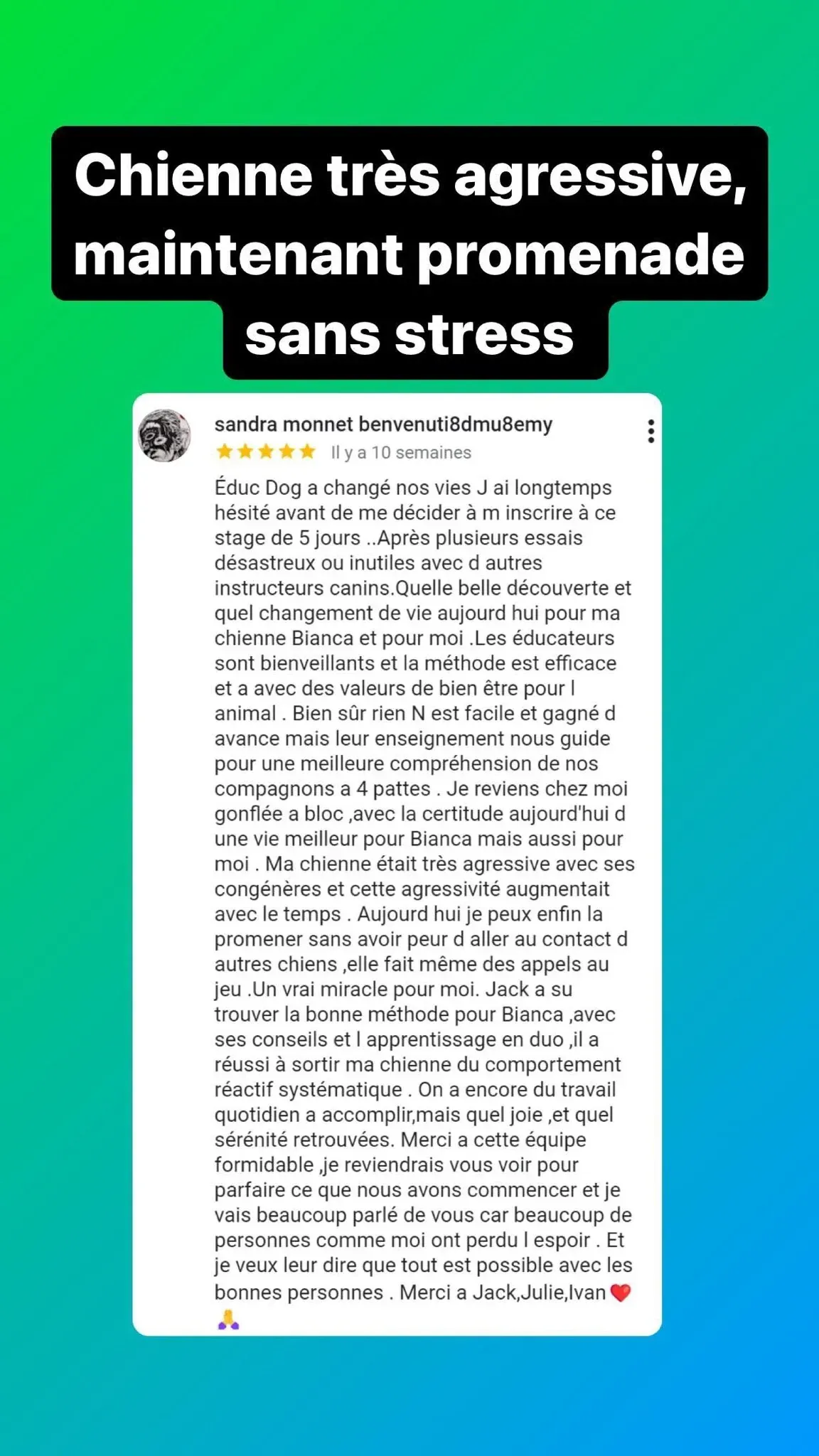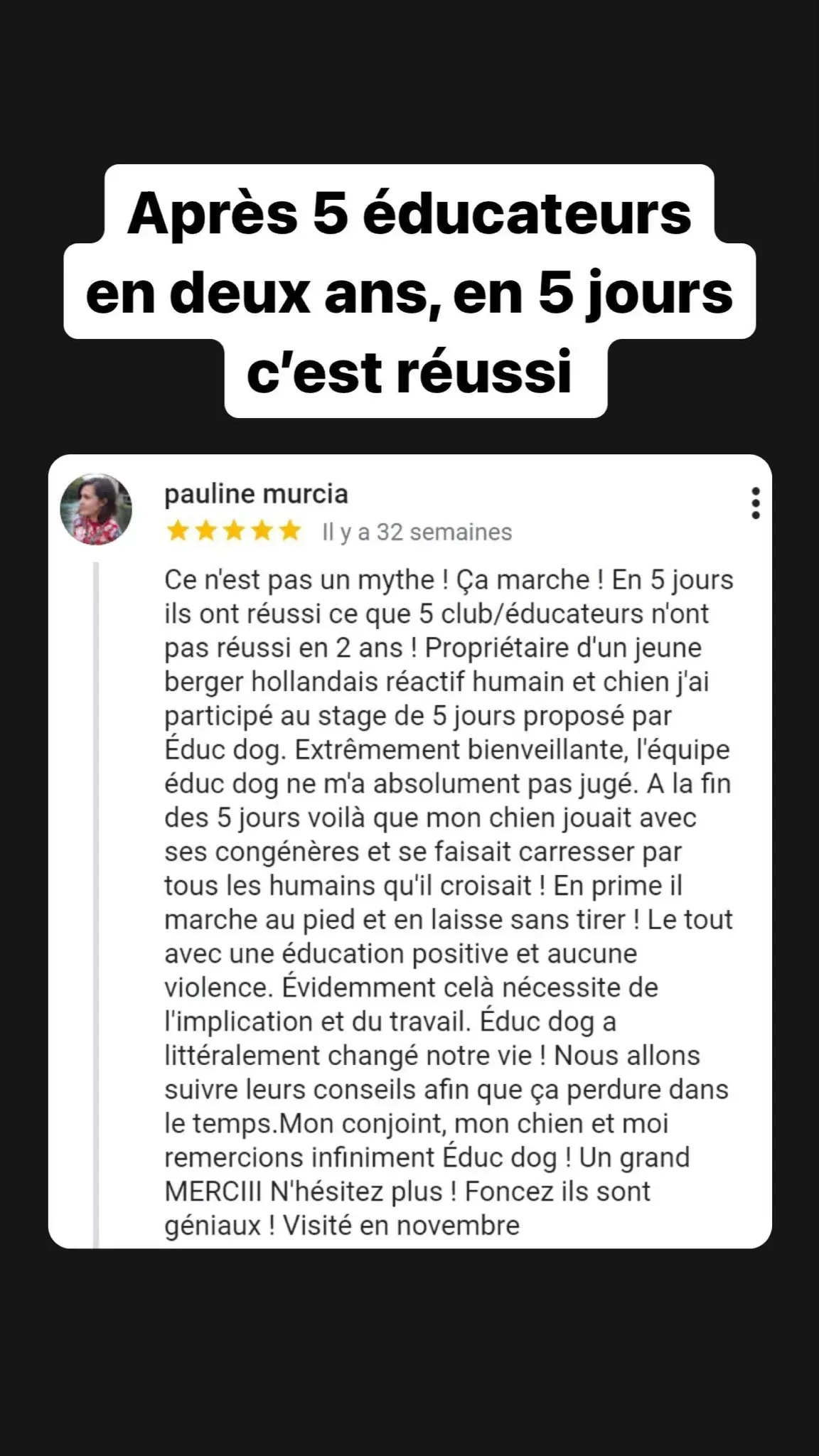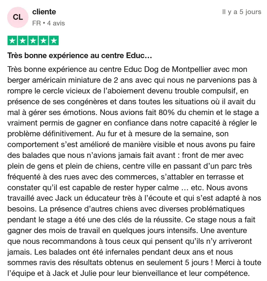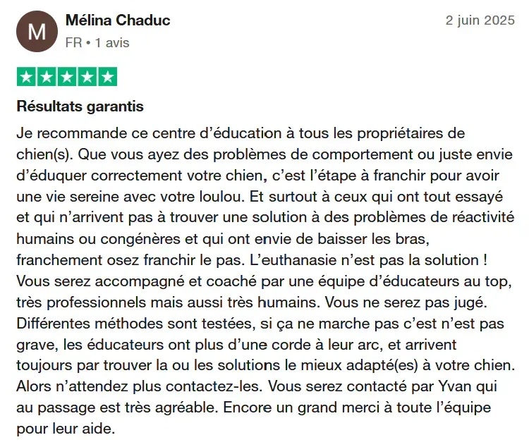 Oui, nous allons vous proposer des solutions qui vous apporteront des solutions. La majorité de nos participants ont vu 2 à plusieurs éducateurs et grâce à notre savoir faire unique nous arrivons avec votre implication à des transformations en seulement 5 jours de stage.
