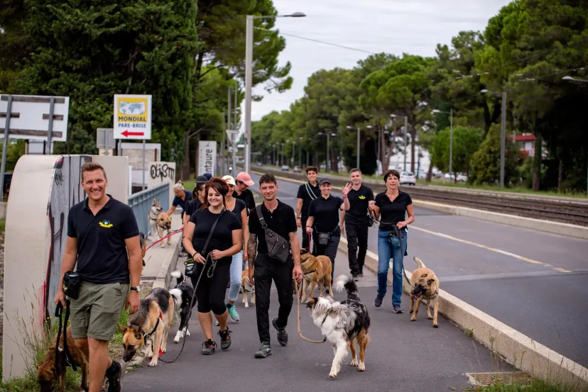 1 séance de Balade Educative de 2 heures : le meilleur moyen de tester les bénéfices du stage lors d'une balade de 2 heures avec d'autres participants et leurs chiens afin que votre chien se comporte bien même en balade collective à l'extérieur, tout cela supervisé par un groupe d'éducateurs canins.